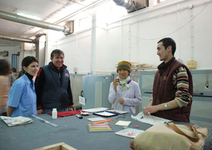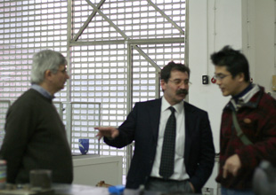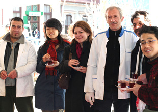 ![]() トルコの大手ガラスメーカー「パシャバフチェ」の マスター、 キョクサンを紹介中のエクレン教授。 小西、朝のあいさつ。 |