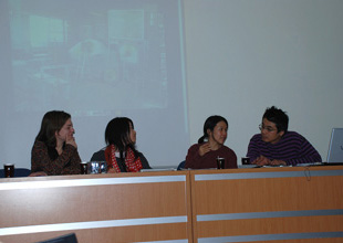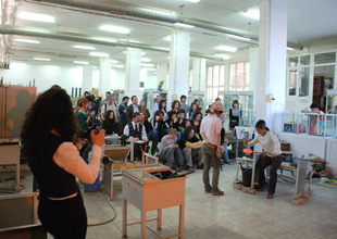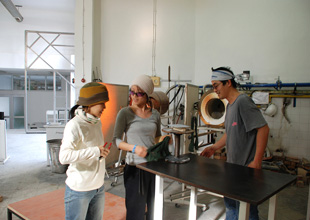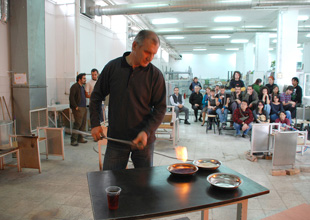 ![]() スライドレクチャー。 自分たちの作品、日本のガラス作家、炉について説明。 |